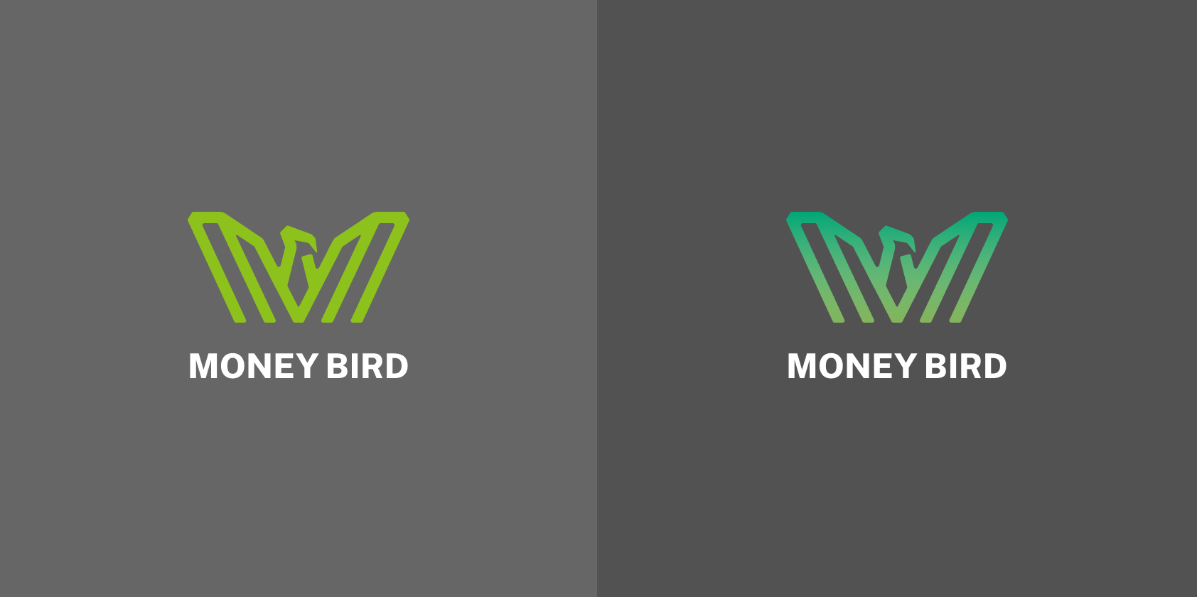 The design extracts the distinctive shapes of the letter “M” and incorporates them into a bird motif. This logo captures the essence of wealth, growth, and the Money Bird brand name.